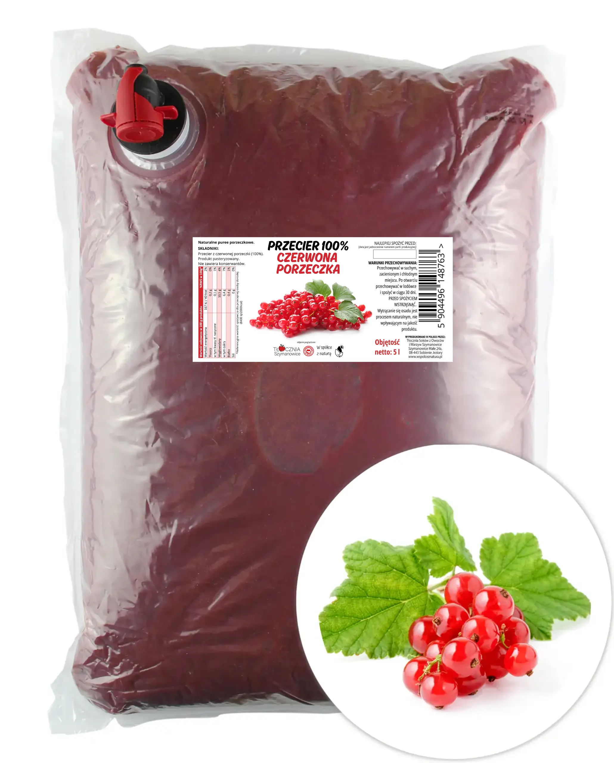 | Nazwa Handlowa | Przecier z czerwonej porzeczki - Pulpa 5 l 100% Owoc Bez Dodatków |