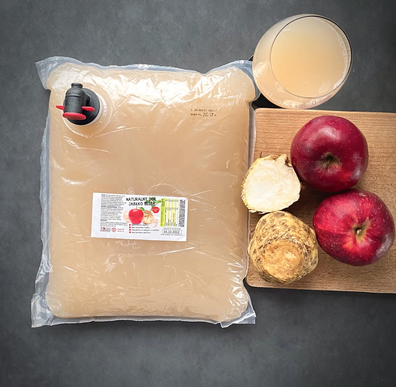 ✅Sok wyłącznie z dojrzałych, polskich jabłek i selera