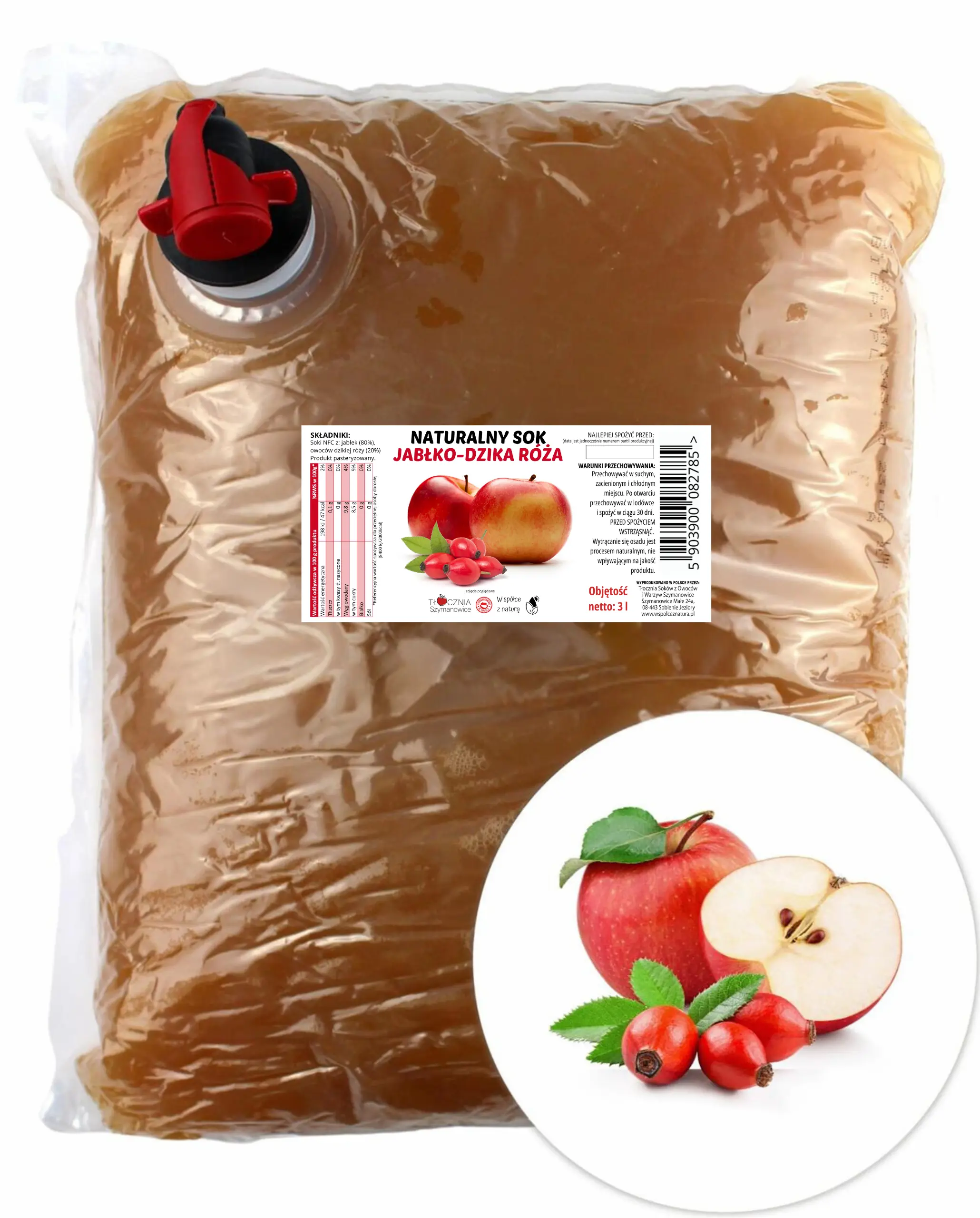 | Nazwa Handlowa | Sok Jabłkowy z Dziką Różą 3 l NFC Bez Dodatków |